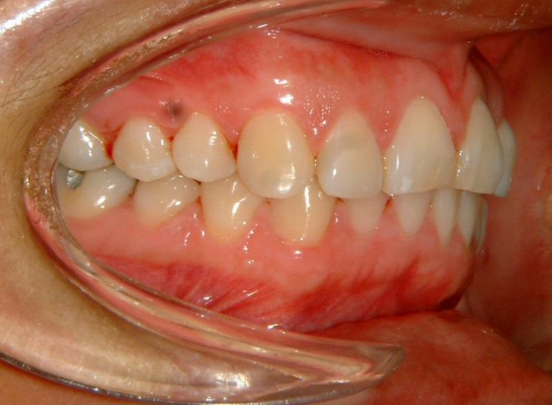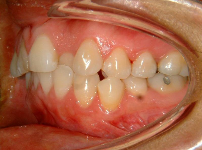 Intra-oral photos of the intial and progress are shown. The brackets are self-ligation: SPEED