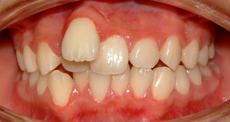 Fig. 1 Upper right central and lateral incisors, forming double rows -- front view