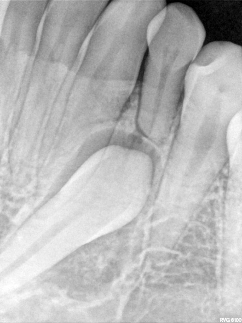 Fig. 14 Periapical radiograph of impacted lower left canine (at 15 y.o., 1 year prior to starting ortho)