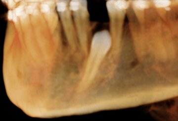 Fig. 16 CBCT: showing impacted lower left canine (at 18 y.o.)