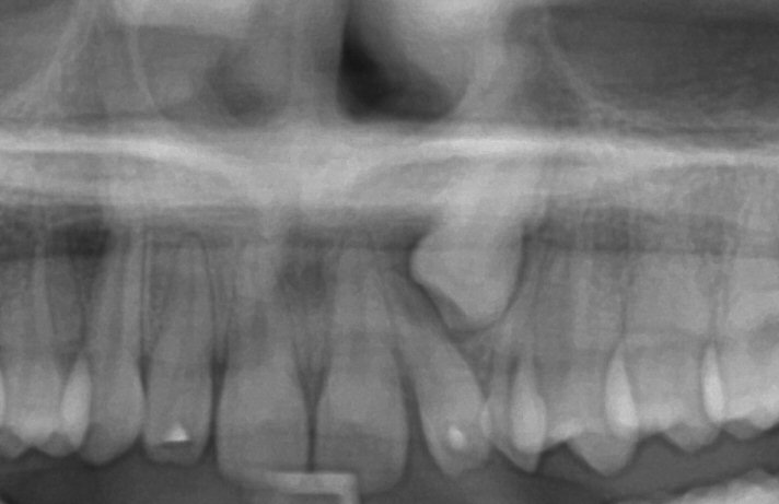 Fig. 1 Initial panoramic radiograph (cropped) of impacted upper left canine