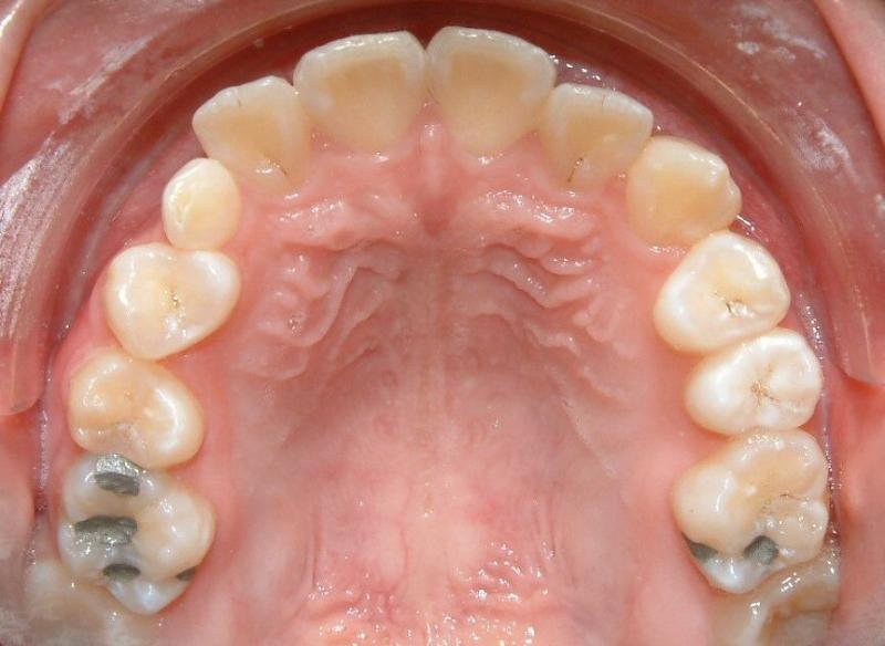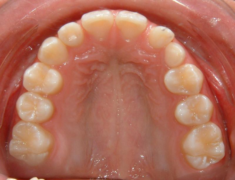 Fig. 2 Initial photograph of impacted upper left canine (no palatal bulging)
